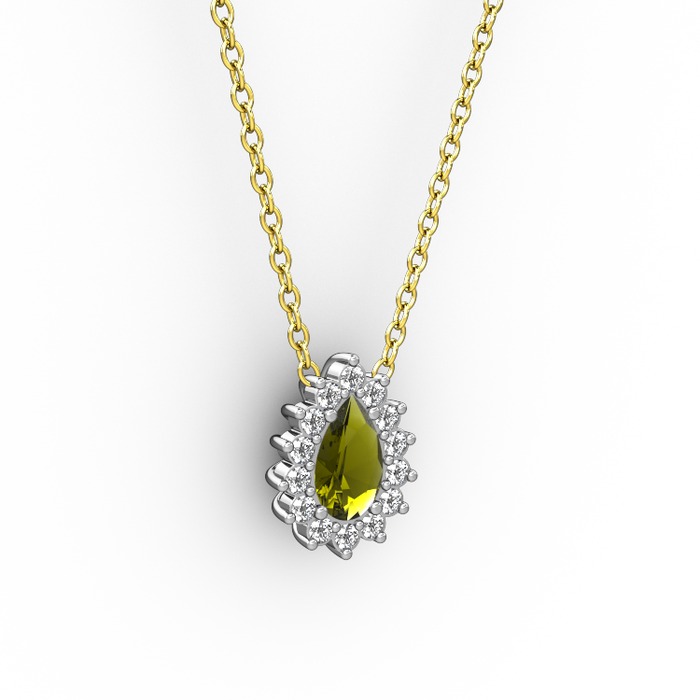 Pırlanta ve peridot 8 ayar beyaz altın kolye (0.1232 karat, 40 cm altın rolo zincir)