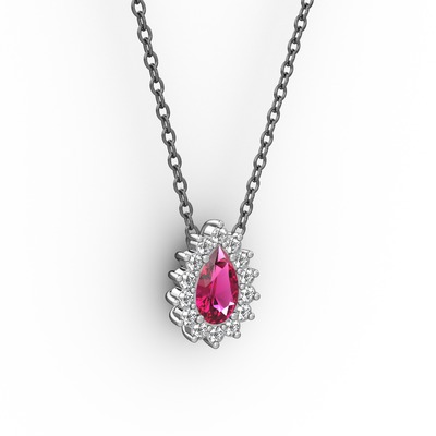 Pırlanta ve rodolit garnet 14 ayar beyaz altın kolye (0.1232 karat, 40 cm gümüş rolo zincir)