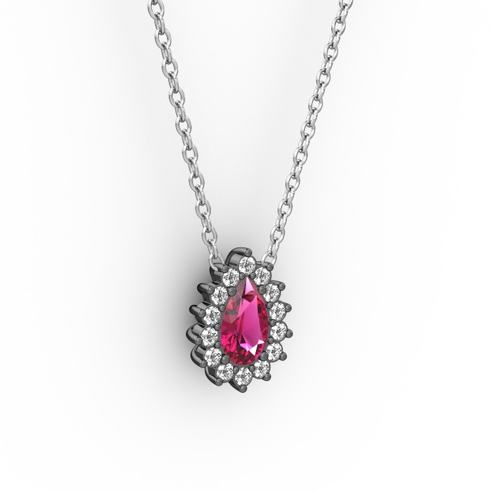 Pırlanta ve rodolit garnet 925 ayar siyah rodyum kaplama gümüş kolye (0.1232 karat, 40 cm beyaz altın rolo zincir)