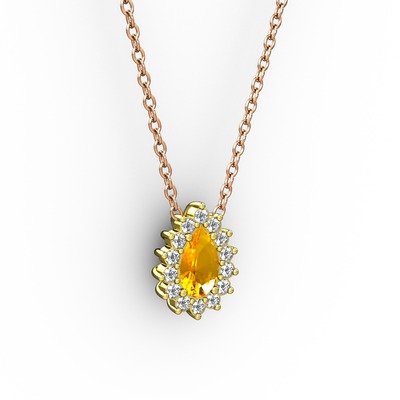 Pırlanta ve sitrin 8 ayar altın kolye (0.1232 karat, 40 cm gümüş rolo zincir)