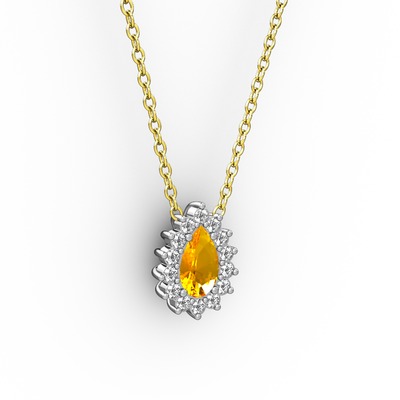 Pırlanta ve sitrin 8 ayar beyaz altın kolye (0.1232 karat, 40 cm altın rolo zincir)