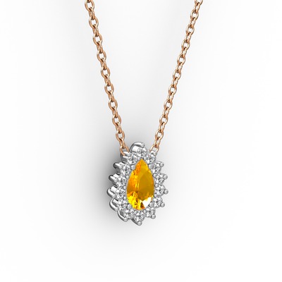 Pırlanta ve sitrin 8 ayar beyaz altın kolye (0.1232 karat, 40 cm rose altın rolo zincir)