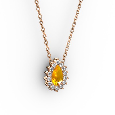 Pırlanta ve sitrin 925 ayar rose altın kaplama gümüş kolye (0.1232 karat, 40 cm rose altın rolo zincir)