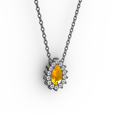 Pırlanta ve sitrin 925 ayar siyah rodyum kaplama gümüş kolye (0.1232 karat, 40 cm gümüş rolo zincir)