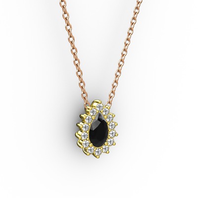 Pırlanta ve siyah zirkon 8 ayar altın kolye (0.1232 karat, 40 cm rose altın rolo zincir)
