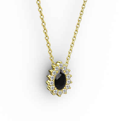 Pırlanta ve siyah zirkon 925 ayar altın kaplama gümüş kolye (0.1232 karat, 40 cm altın rolo zincir)