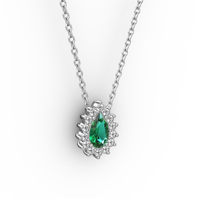 Pırlanta ve yeşil kuvars 14 ayar beyaz altın kolye (0.1232 karat, 40 cm gümüş rolo zincir)
