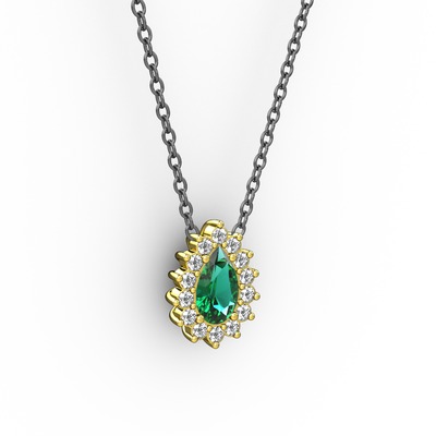 Pırlanta ve yeşil kuvars 8 ayar altın kolye (0.1232 karat, 40 cm gümüş rolo zincir)