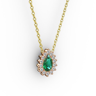 Pırlanta ve yeşil kuvars 8 ayar rose altın kolye (0.1232 karat, 40 cm gümüş rolo zincir)