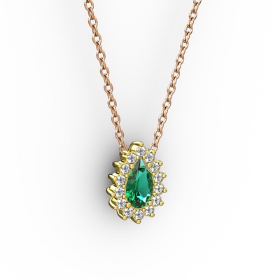 Pırlanta ve yeşil kuvars 925 ayar altın kaplama gümüş kolye (0.1232 karat, 40 cm rose altın rolo zincir)