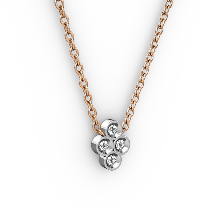 Pırlanta 18 ayar beyaz altın kolye (0.044 karat, 40 cm rose altın rolo zincir)