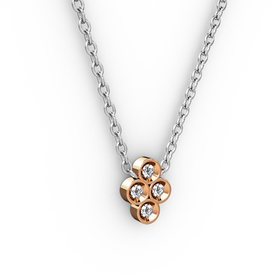 Pırlanta 925 ayar rose altın kaplama gümüş kolye (0.044 karat, 40 cm beyaz altın rolo zincir)
