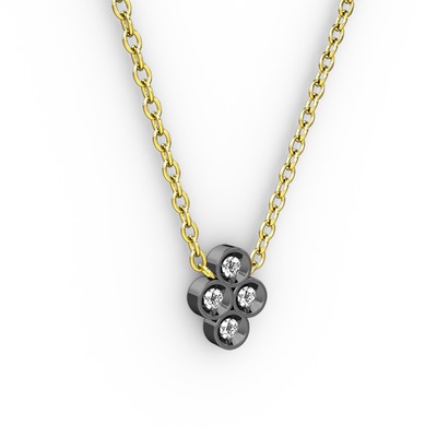 Pırlanta 925 ayar siyah rodyum kaplama gümüş kolye (0.044 karat, 40 cm altın rolo zincir)