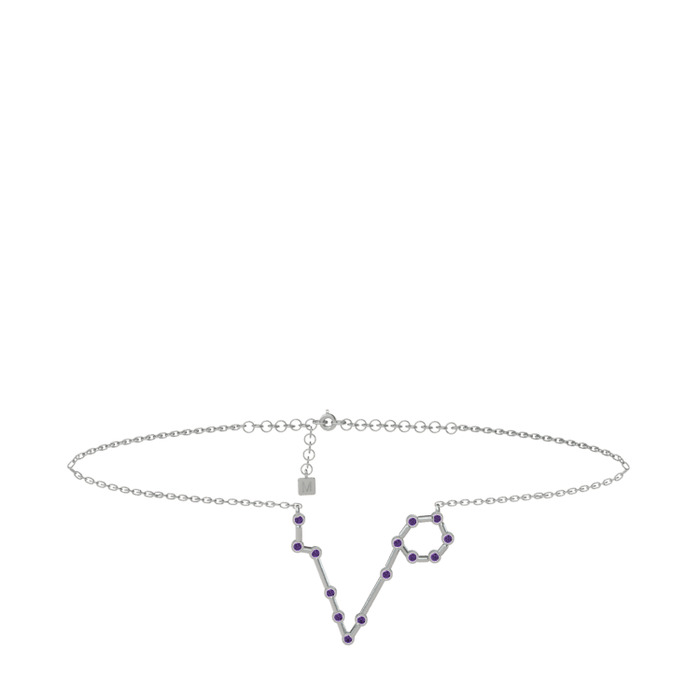 Ametist 18 ayar beyaz altın bilezik (20 cm gümüş rolo zincir)