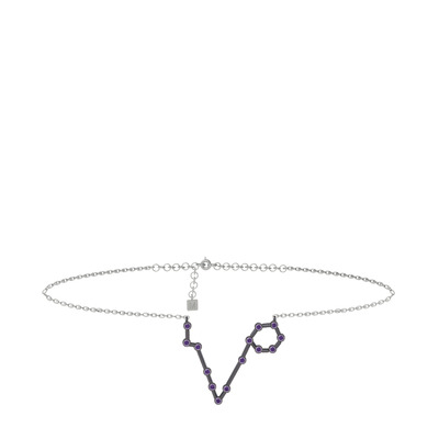 Ametist 925 ayar siyah rodyum kaplama gümüş bilezik (20 cm gümüş rolo zincir)