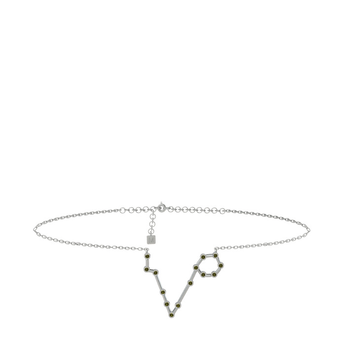 Peridot 18 ayar beyaz altın bilezik (20 cm gümüş rolo zincir)