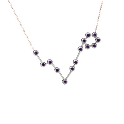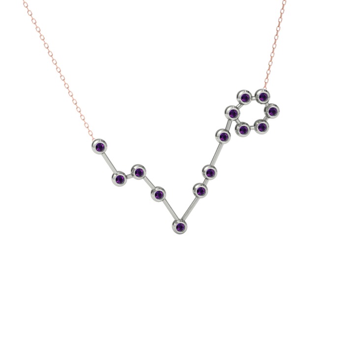 Ametist 18 ayar beyaz altın kolye (40 cm rose altın rolo zincir)