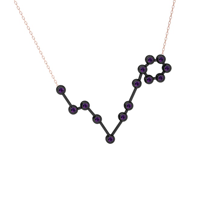 Ametist 925 ayar siyah rodyum kaplama gümüş kolye (40 cm gümüş rolo zincir)