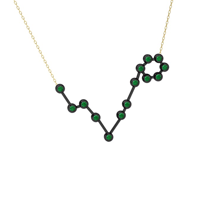Kök zümrüt 925 ayar siyah rodyum kaplama gümüş kolye (40 cm altın rolo zincir)