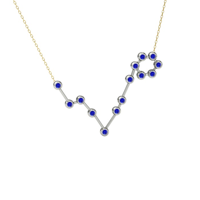Lab safir 14 ayar beyaz altın kolye (40 cm altın rolo zincir)