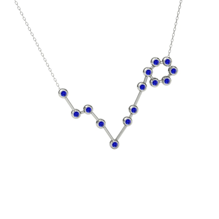 Lab safir 925 ayar gümüş kolye (40 cm beyaz altın rolo zincir)
