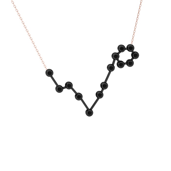 Siyah zirkon 925 ayar siyah rodyum kaplama gümüş kolye (40 cm rose altın rolo zincir)