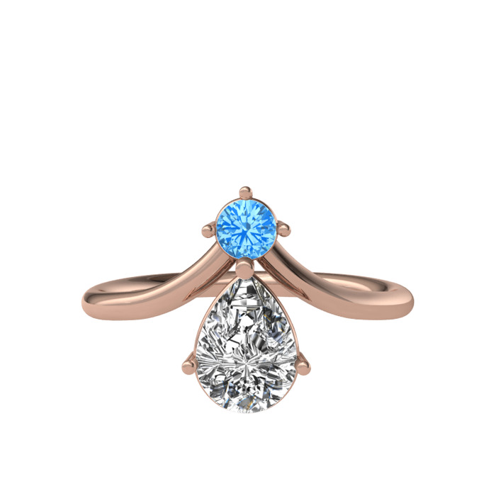 Akuamarin ve beyaz zirkon 18 ayar rose altın yüzük