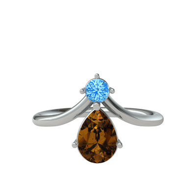 Akuamarin ve dumanlı kuvars 925 ayar gümüş yüzük