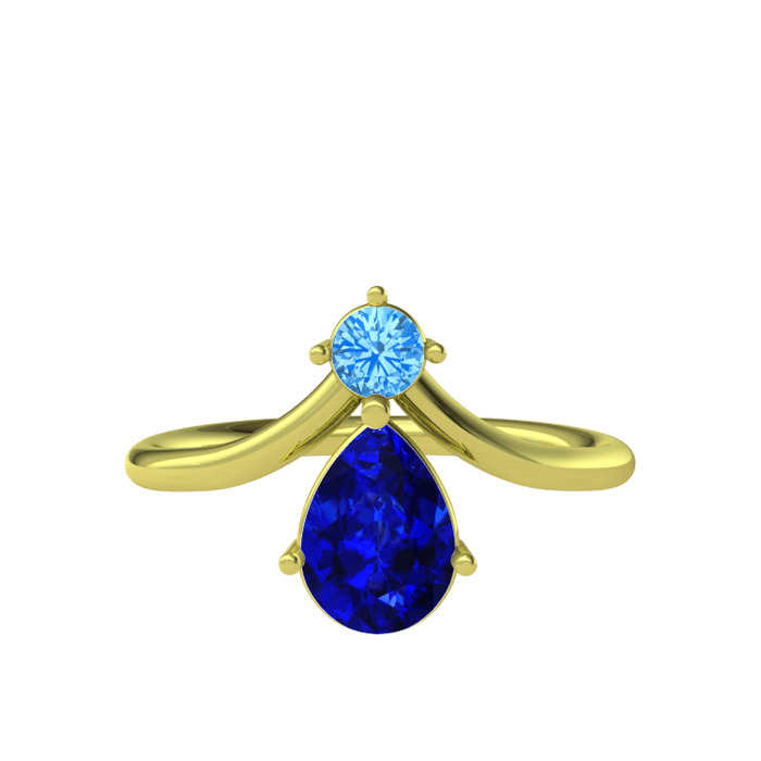 Akuamarin ve lab safir 18 ayar altın yüzük