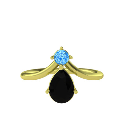 Akuamarin ve siyah zirkon 14 ayar altın yüzük