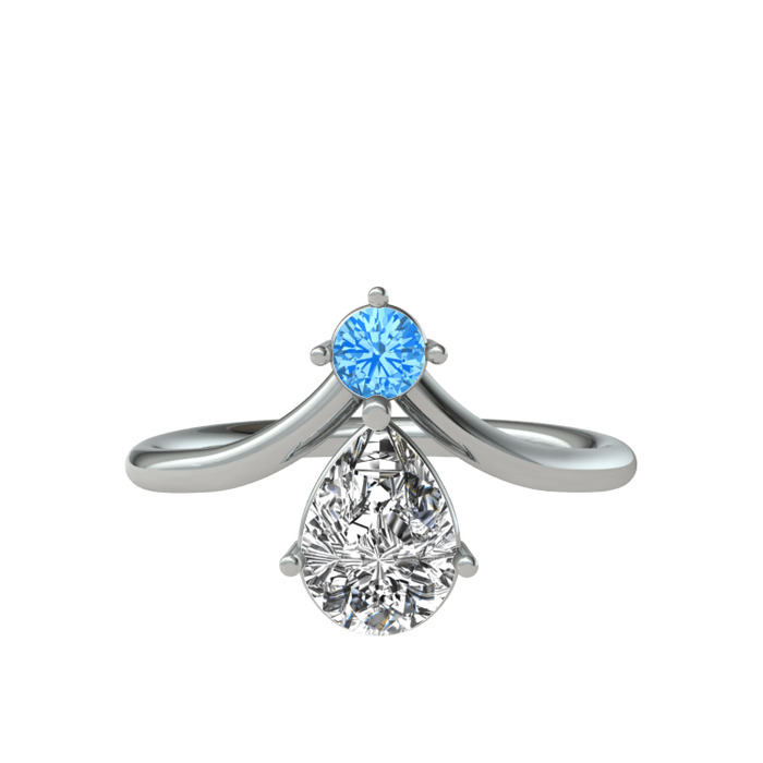 Akuamarin ve swarovski 18 ayar beyaz altın yüzük
