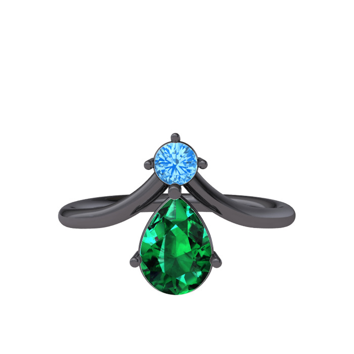 Akuamarin ve yeşil kuvars 925 ayar siyah rodyum kaplama gümüş yüzük