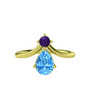 Ametist ve akuamarin 925 ayar altın kaplama gümüş yüzük