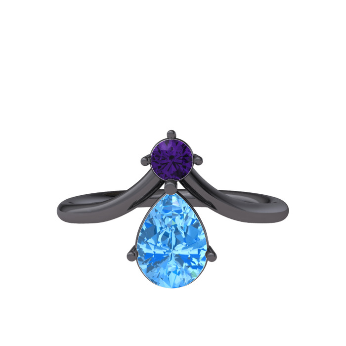 Ametist ve akuamarin 925 ayar siyah rodyum kaplama gümüş yüzük