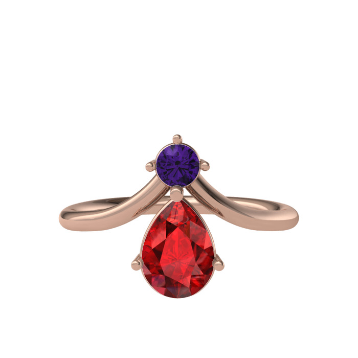 Ametist ve garnet 14 ayar rose altın yüzük