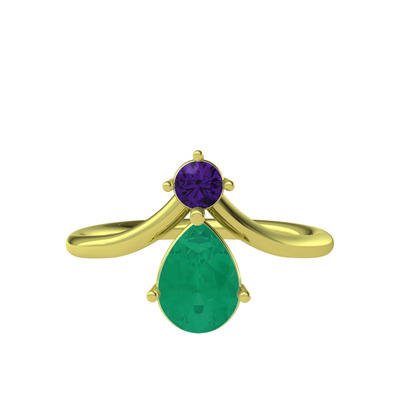 Ametist ve kök zümrüt 18 ayar altın yüzük