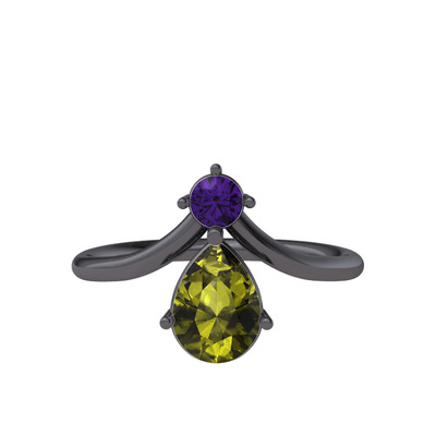 Ametist ve peridot 925 ayar siyah rodyum kaplama gümüş yüzük