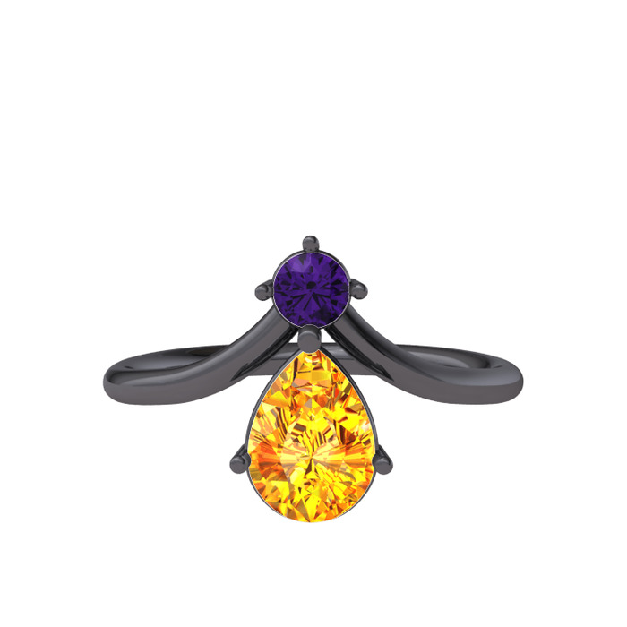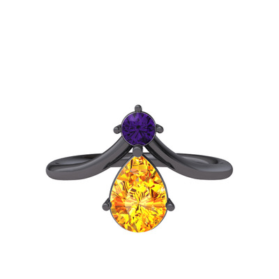 Ametist ve sitrin 925 ayar siyah rodyum kaplama gümüş yüzük