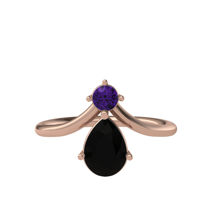 Ametist ve siyah zirkon 18 ayar rose altın yüzük