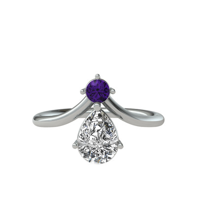 Ametist ve swarovski 18 ayar beyaz altın yüzük
