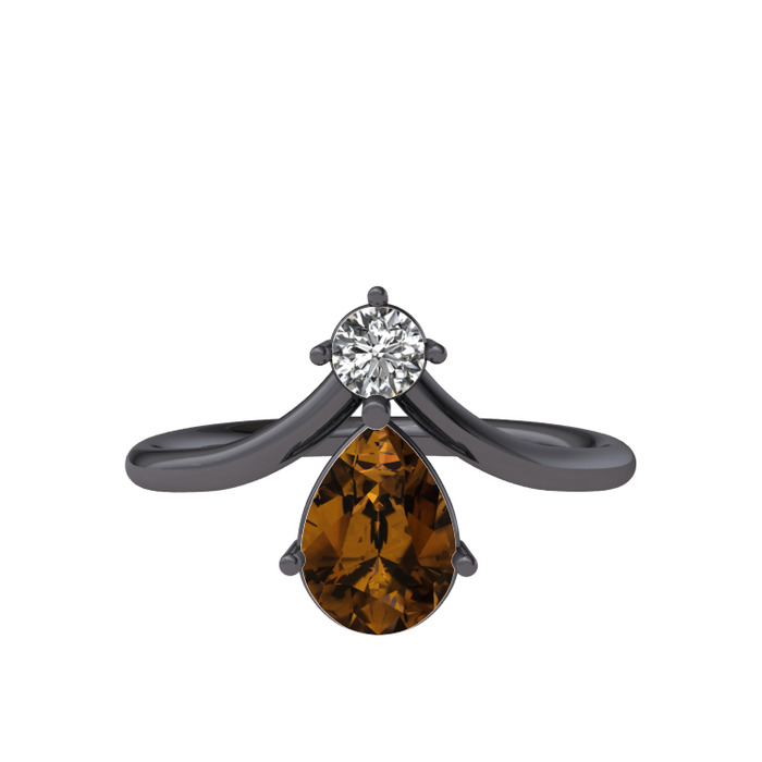 Beyaz zirkon ve dumanlı kuvars 925 ayar siyah rodyum kaplama gümüş yüzük