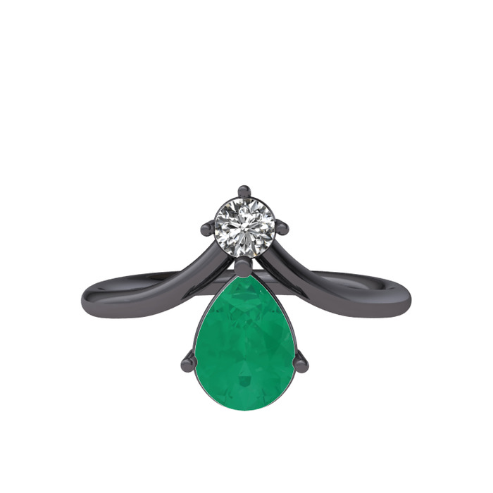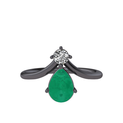 Beyaz zirkon ve kök zümrüt 925 ayar siyah rodyum kaplama gümüş yüzük