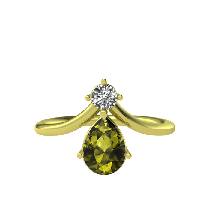 Beyaz zirkon ve peridot 18 ayar altın yüzük