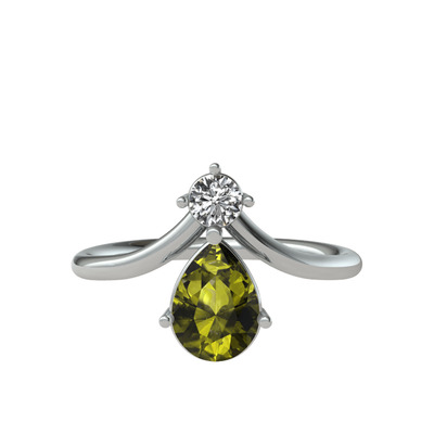 Beyaz zirkon ve peridot 925 ayar gümüş yüzük