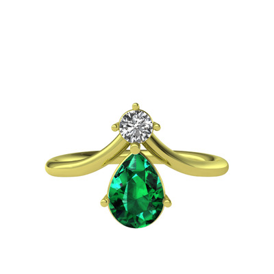 Beyaz zirkon ve yeşil kuvars 8 ayar altın yüzük