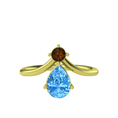 Dumanlı kuvars ve akuamarin 925 ayar altın kaplama gümüş yüzük