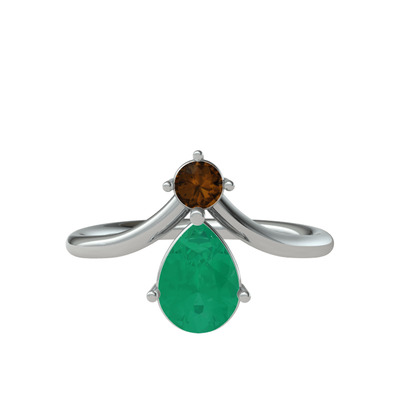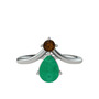 Dumanlı kuvars ve kök zümrüt 8 ayar beyaz altın yüzük