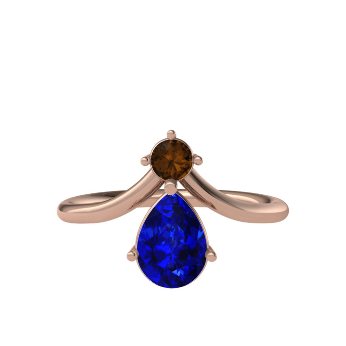 Dumanlı kuvars ve lab safir 14 ayar rose altın yüzük