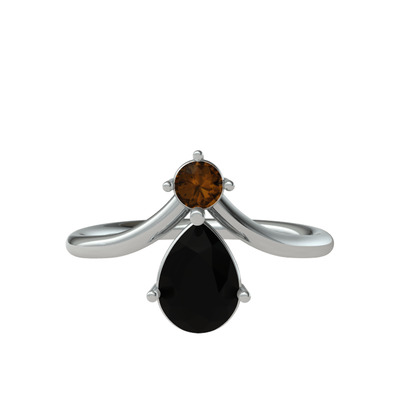 Dumanlı kuvars ve siyah zirkon 8 ayar beyaz altın yüzük