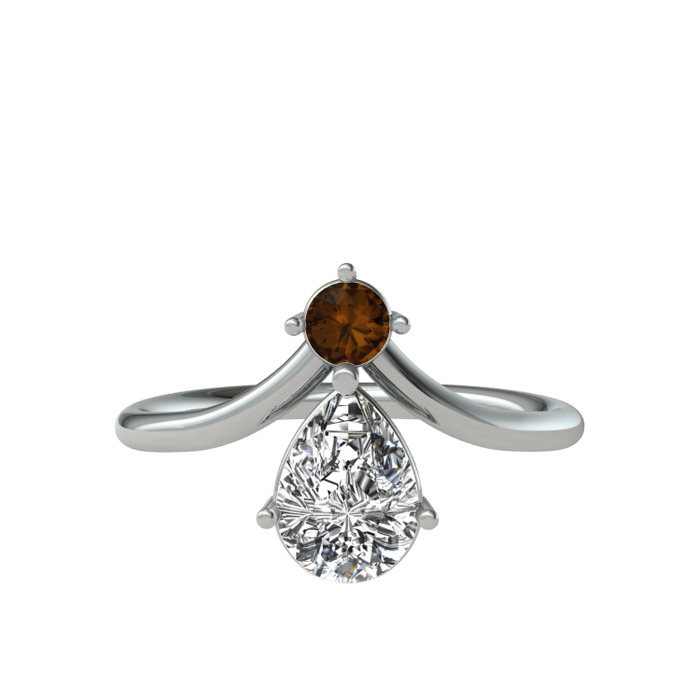 Dumanlı kuvars ve swarovski 14 ayar beyaz altın yüzük